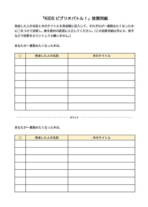 KIDSのビブリオバトル!の進行の際にあると便利な各資料をダウンロードすることができます。