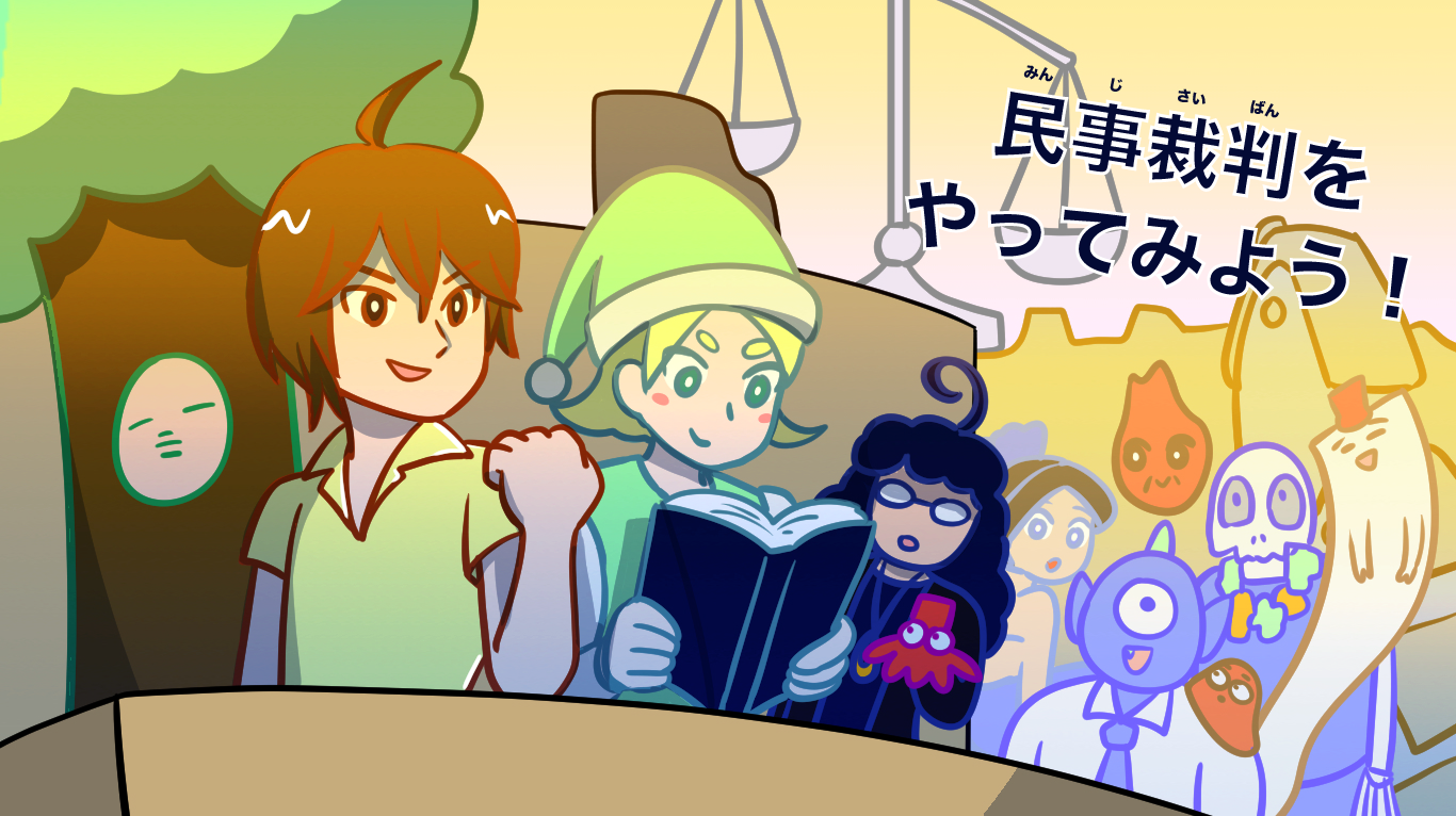 架空の事件に対して<原告弁護団>・<被告弁護団>・<裁判官>の立場に分かれ、法律を根拠にそれぞれの立場から議論することで、ものごとを論理的に考えたり、人を説得する力を磨けるゲームです。