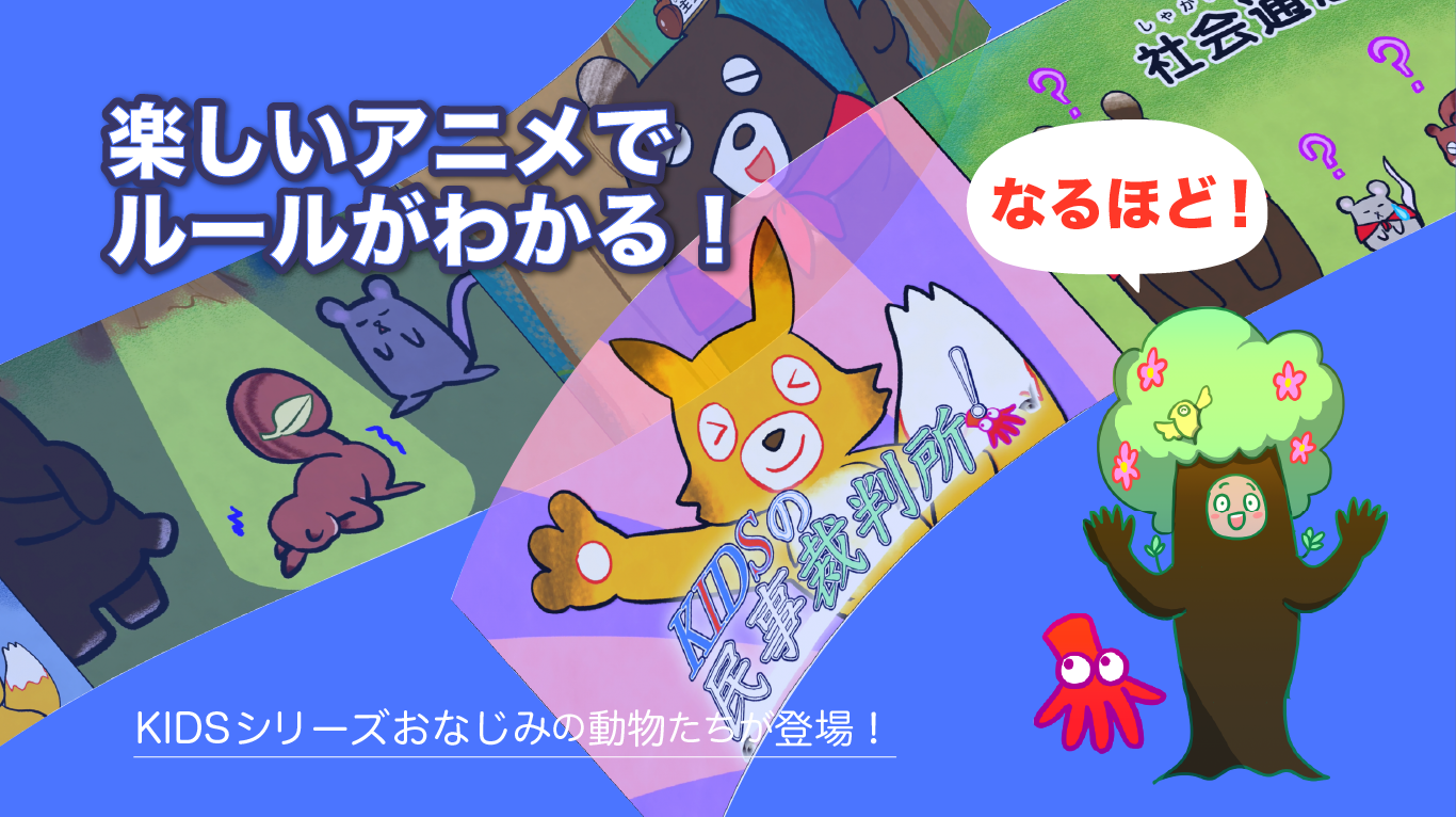 裁判のルールや法律について学べるアニメ教材「おしゃべり森のどうぶつたち」も併録されていますので、裁判や法律に詳しくない方でも安心して取り組んでいただくことができます。