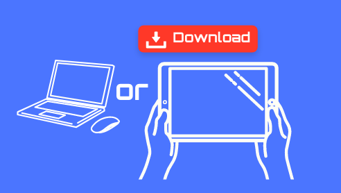 メニューバーの右上、もしくはこのページの一番下のボタンからダウンロードページに移動し、ノートパソコンもしくはタブレットに教材をダウンロードします。 |