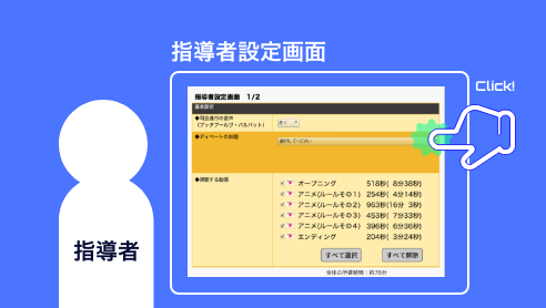 教材の最初では、各チームの人数やジャッジを誰がするか、観せる動画などの設定を行います。設定画面を印刷することもできます。 |