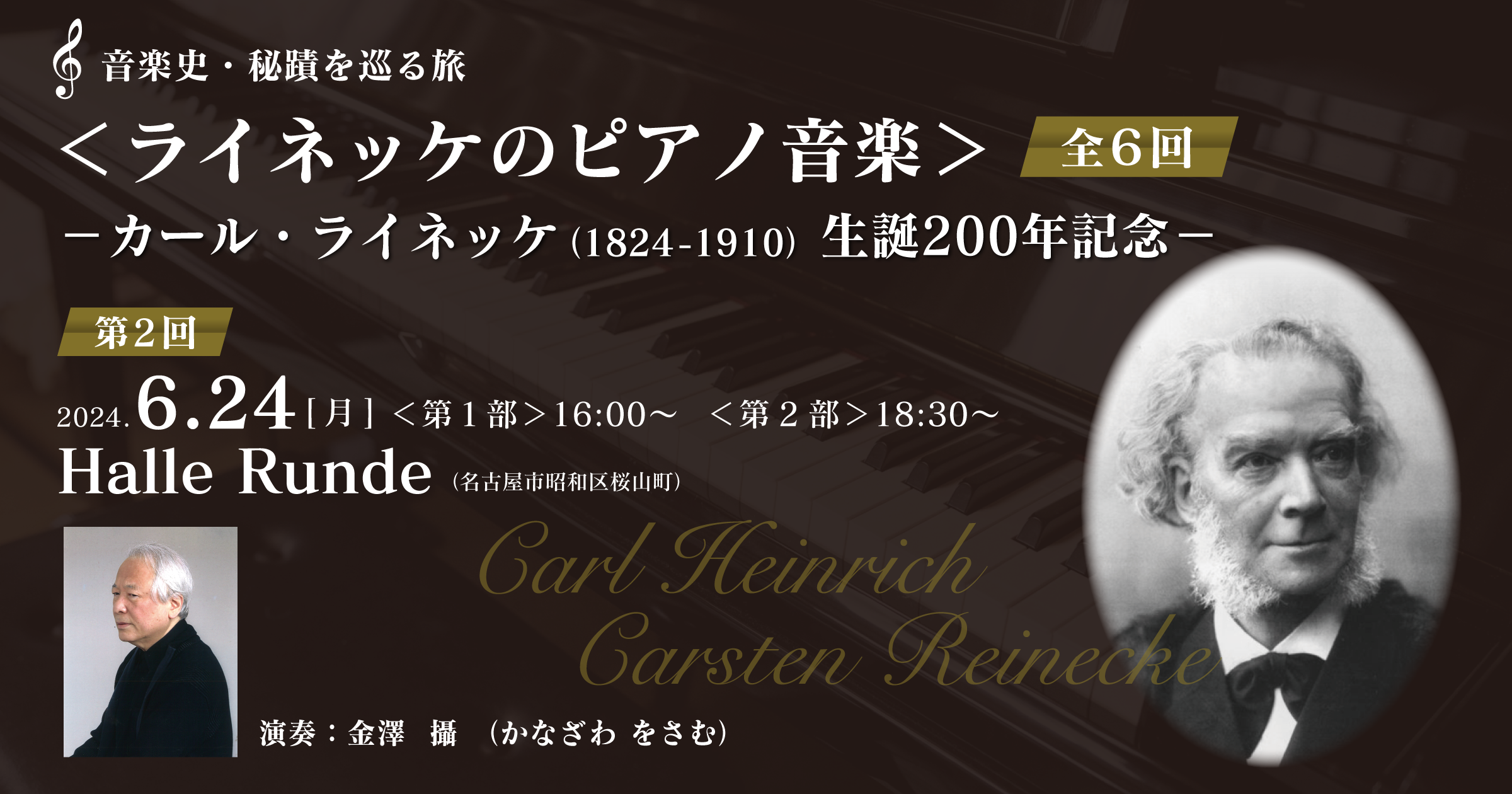 6回にわたるツィクルスは各日共、演奏時間60分余りの2つのステージで構成され、実質12回のコンサートとなる。その最終ステージでは時間枠を拡げ、同時代の作曲家によるライネッケへの献呈作品を集めてこの巨匠の存在感をさまざまな視点から偲んでみたい。
